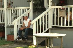 Sean and Ryan supervising the decorating Laughing