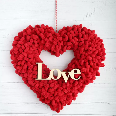 Red loop yarn Valentine wreath