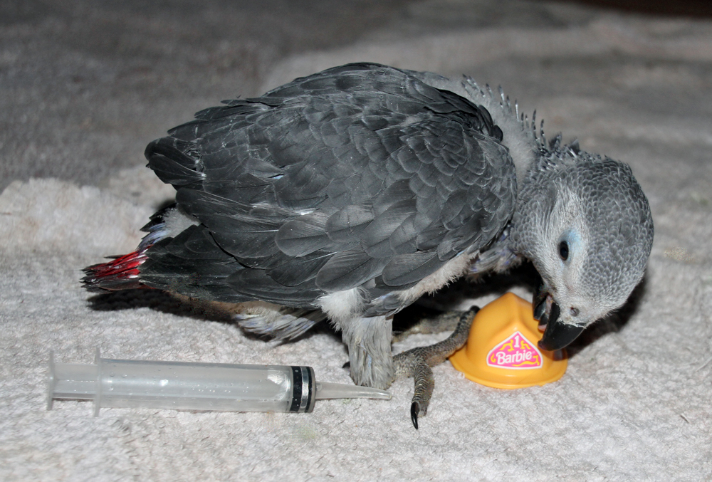 Davi will start loosing weight soon, as his wings start doing what bird wings do. Healthy young baby birds are round, chubby and cute, with fat toes and wing tips. They must burn off this baby fat in order to spread their wings and lift themselves into the air to fly (fledge). They practice by flapping their wings so hard that they scoot across the floor in a line or in circles. It won't be long now. This picture is included in the If you love life, life will love you back - Davinci photo album belonging to Badger. It has been uploaded on 11 Aug 2012 at 9:37PM. Votes: 0 You can return to Badger's album or open your photo album. Comments Re: Size Comparison Photo Taken 8.10.2012 - weighi Seeing them scoot across the floor would be so funny! I laugh at my birds all the time - I can watch them for hours! Peeky practiced to fly by holding on to the perch and then flapping as hard as she possibly could - you could see her feet clutching at the perch as her body wanted to take off!