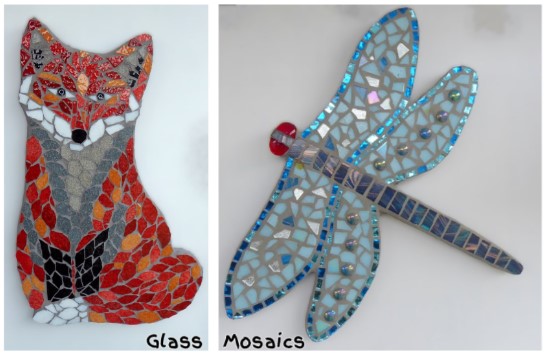 Glass mosaic animals.