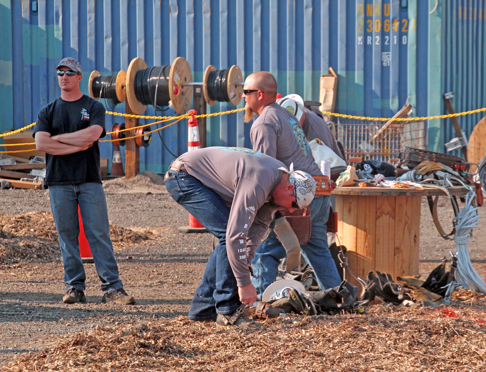 Safety is of the utmost concern. Thus, there is a lot of gear each man needs carry/wear to protect himself when working wire. After all, those lines can carry huge amounts of wattage. Overhead power transmission lines are classified in the electrical power industry by the range of voltages: This picture is included in the If There Were Linemen on the Moon, It wouldn't Be Dark - Lineman's Rodeo August 2013 photo album belonging to Badger. It has been uploaded on 30 Aug 2013 at 3:25PM. Votes: 0 You can return to Badger's album or open your photo album. Comments No comments have been posted yet. (You must be logged in to post comments) |