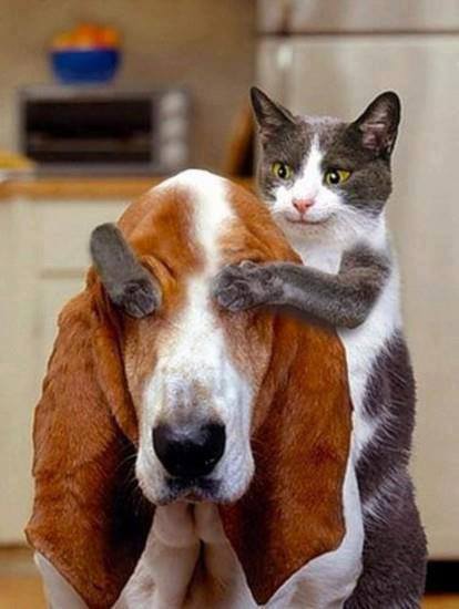 Posted at 16 Nov 2013 at 3:40AM by PattyMac Re: November, 2013, Caption Contest Would someone pleeeeease get this lunatic of a cat off of me!!! Where are those humans when you need them? Posted at 16 Nov 2013 at 4:59AM by pepperbeach Re: November, 2013, Caption Contest Hounds use their noses NOT their eyes and I KNOW THE SMELL OF A CAT!!!