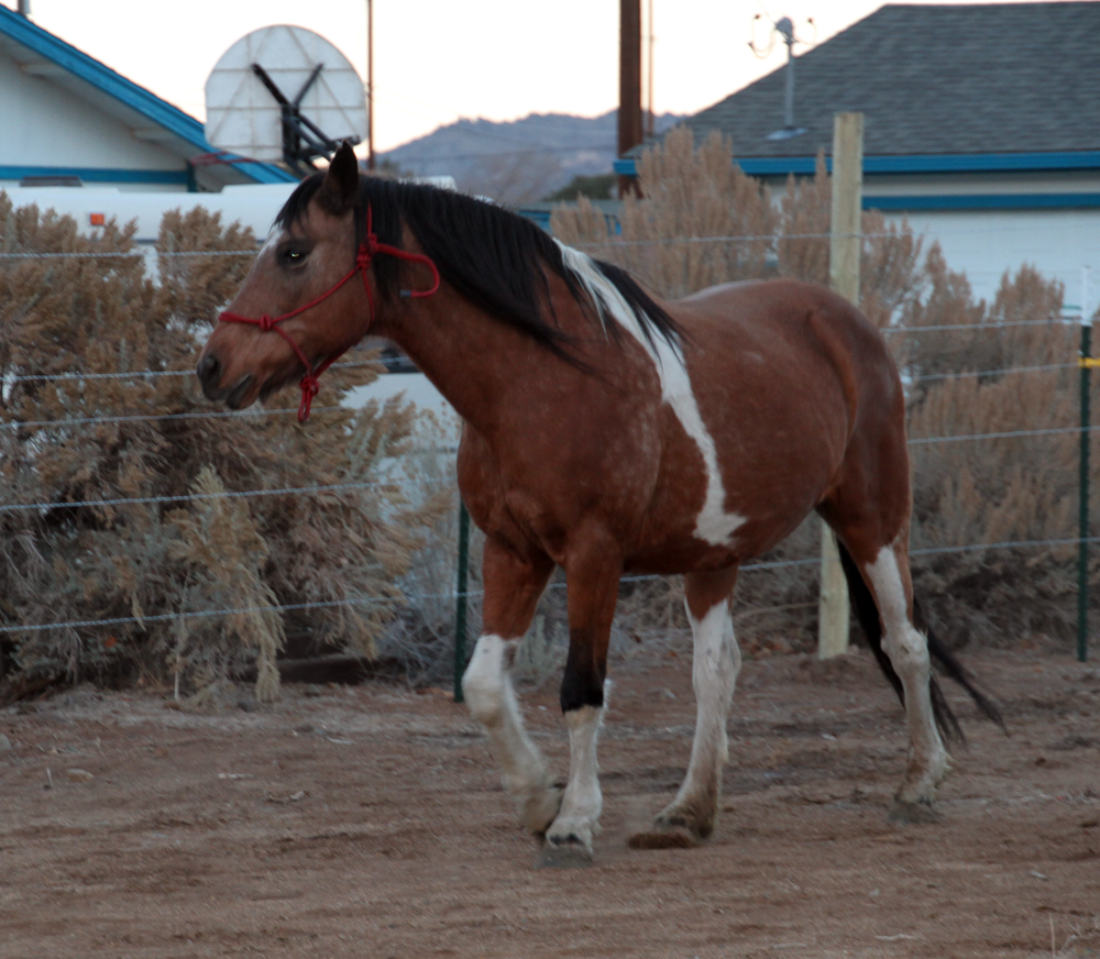 Posted at 21 Nov 2013 at 9:55PM by Churchgoer Re: Breezy, a dappled tricolor, waiting to get her The halter was how we led her into the horse trailer to bring her home. We just hadn't taken it off yet after releasing her in her new pasture.
