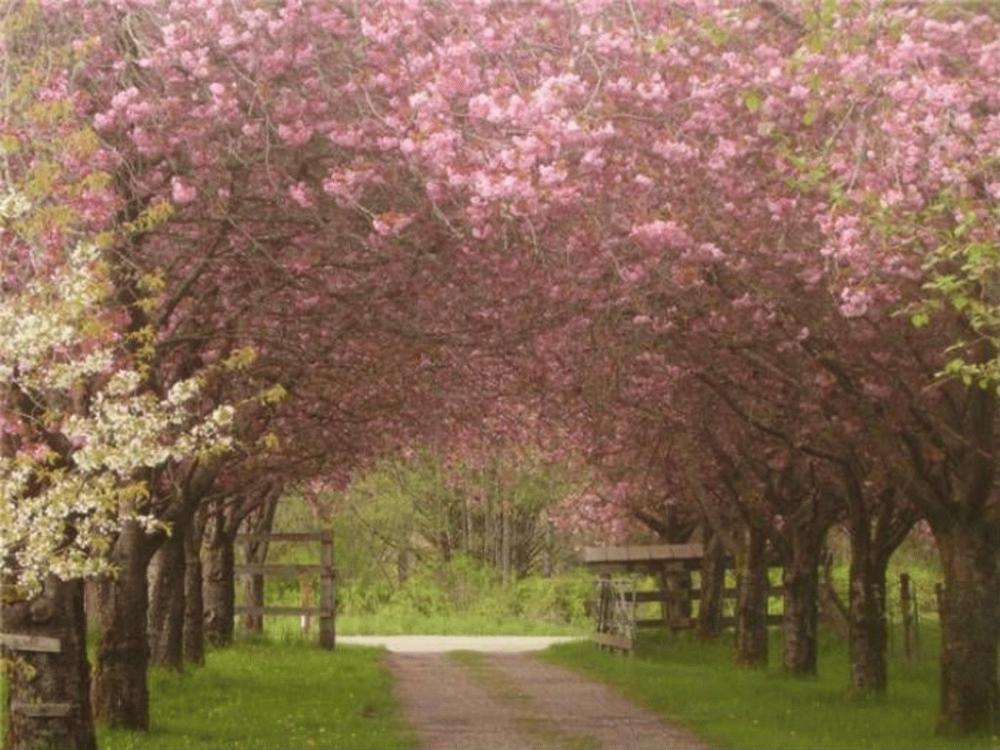 Flowering cherry trees at the old ranch in Washington
