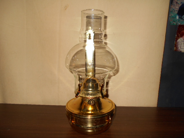 Hanging brass oil lamp