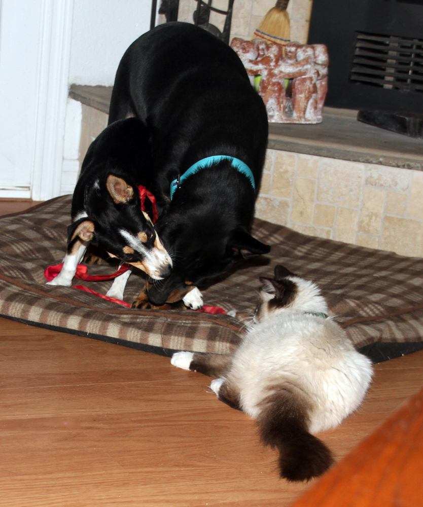 Posted at 27 Feb 2016 at 12:16AM by Badger Re: Wrestlin' What a beautiful cat! I love how the dogs are playing, too, it just is so sweet!