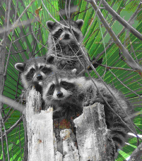 Trio of Racoons in the Palmettos