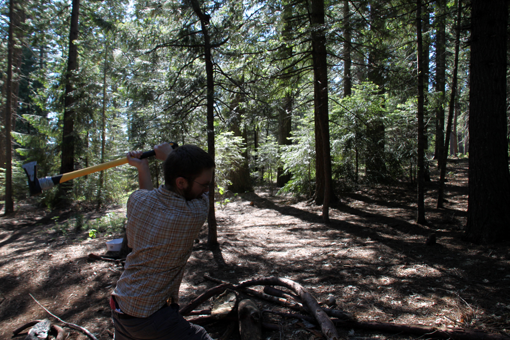 Evan chopping firewood