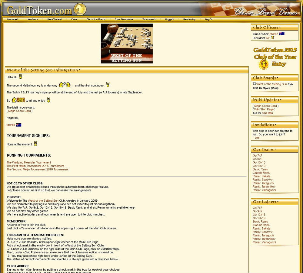 The West of the Setting Sun Club This picture is included in the GoldToken's 2015 Club of the Year Entries photo album belonging to GoldToken Support. It has been uploaded on 2 Jun 2016 at 3:53PM. Votes: 0 Comments No comments have been posted yet. (You must be logged in to post comments) |