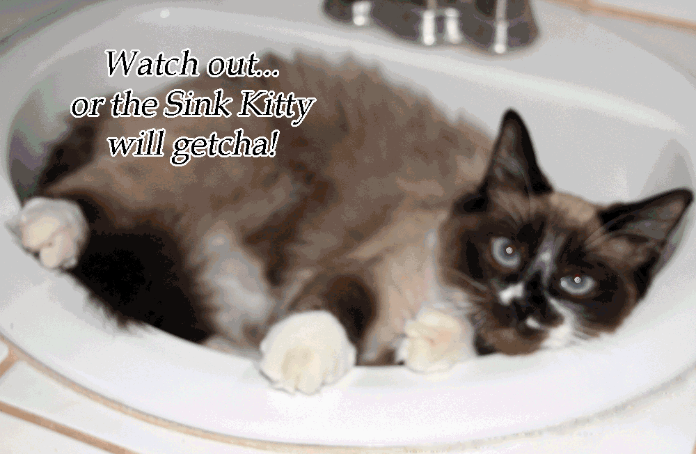 Posted at 14 Feb 2017 at 10:12PM by Hillbilly Re: May Ling, our Sink Kitty It occasionally drips, so she gets quite wet while playing there. Funny, as she doesn't mind, and will stay there even when you wash your hands lol.
