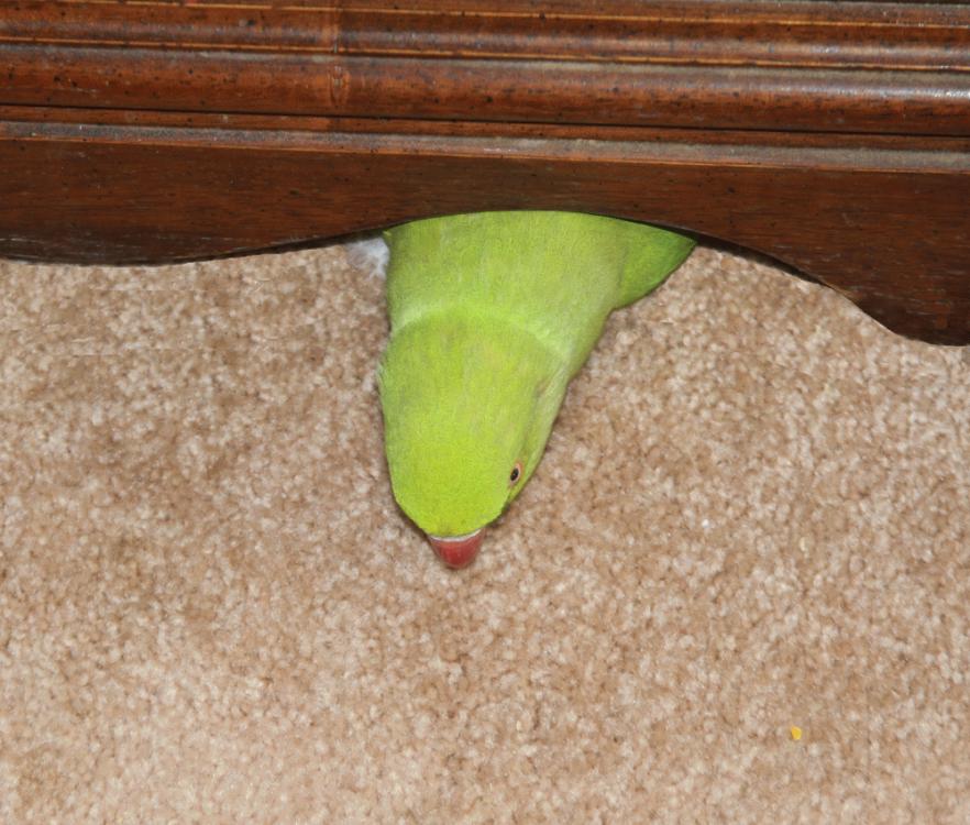When Lucy gets under my desk, she becomes a vicious attack bird and is apt to take several chunks of meat off your toes if you aren't quick enough! Looks at those eyes...she means business! This picture is included in the Once Upon a Wing - the birds in my life photo album belonging to Badger. It has been uploaded on 14 Dec 2011 at 8:25PM. Votes: 0 You can return to Badger's album or open your photo album. Comments Re: Attack Bird haha