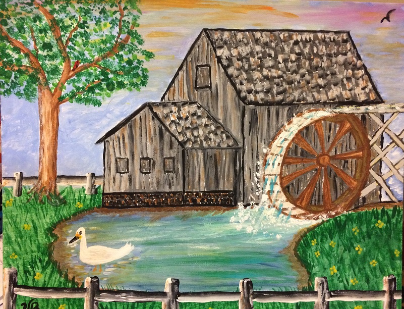 Posted at 3 Feb 2019 at 12:00PM by LikAll Re: The Old Mill - Painted 1-18-19 LIKALL, NO ELECTRIC WIRES IN THIS PHOTO..Posted at 3 Feb 2019 at 3:04PM by PEACH WINE Re: The Old Mill - Painted 1-18-19 The water is working the mill to grind corn lol