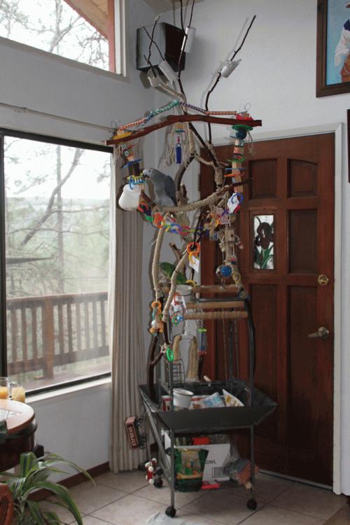 Birds get bored easily, which is why they should have a play gym. On the side of Ick's, is a little wagon, and his red roller skates, which he will eventually (hopefully!) learn a couple tricks with. Ick hasn't discovered the treats kept at the bottom, but it's just a matter of time before they will have to be moved. The empty TP rolls near the top make for fun shredding and only last a day or so before they are mulched into nothingness. LOL...my neighbors save them for the kids, so we are never in short supply. This picture is included in the On a wing and a prayer - Life with Icarus photo album belonging to Badger. It has been uploaded on 1 Apr 2012 at 9:55PM. Votes: 0 You can return to Badger's album or open your photo album. Comments No comments have been posted yet. (You must be logged in to post comments) |