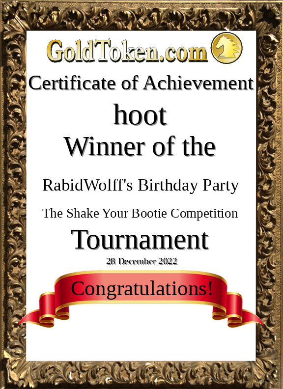 Album Photo This picture is included in the Tournament achievements photo album belonging to hoot. It has been uploaded on 28 Dec 2022 at 3:36PM. Votes: 0 You can return to hoot's album or open your photo album. Comments No comments have been posted yet. (You must be logged in to post comments) |
