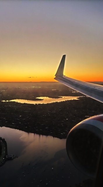 Flying into Sydney Australia at sunset.