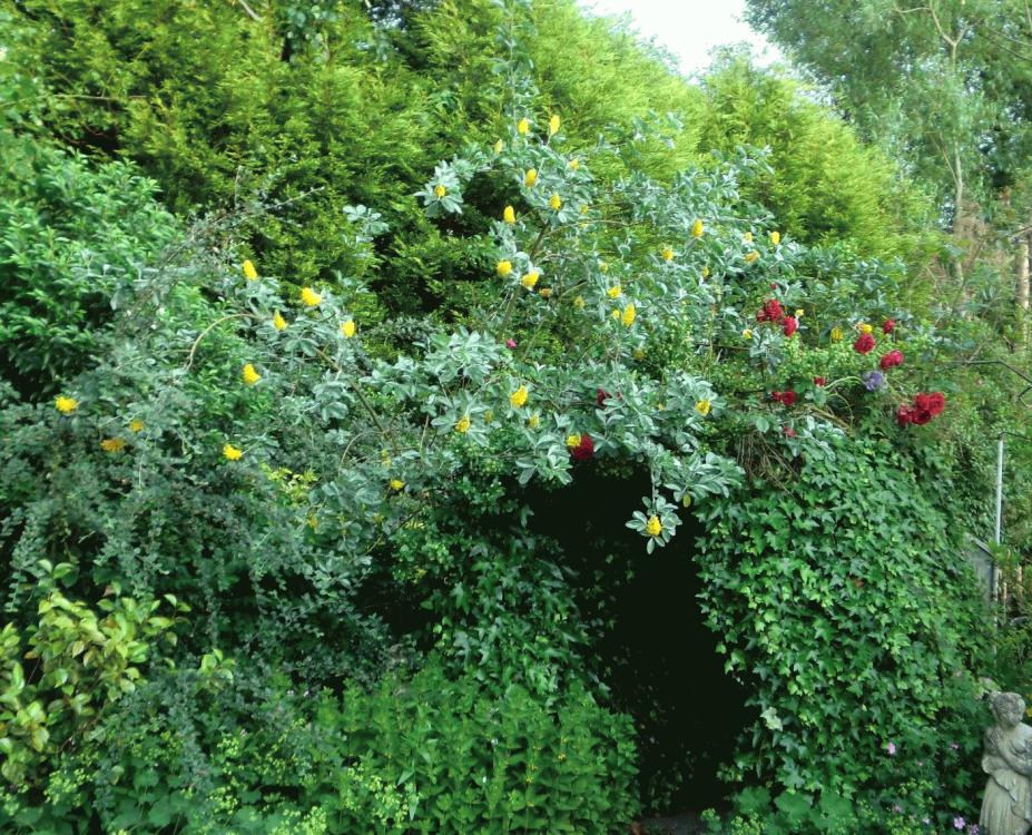 Album Photo This picture is included in the Garden layout photo album belonging to Budgie. It has been uploaded on 4 Jul 2013 at 7:49PM. Votes: 0 You can return to Budgie's album or open your photo album. Comments Re: The archway u see is covered in Ivy.. Red Roses..Bright Yellow flowers from a pineapple tree leading to the green house and my rubbish tip lol