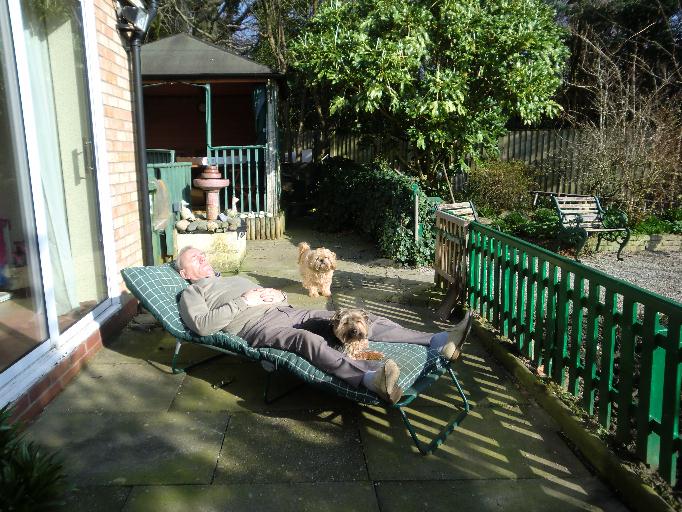 Album Photo Having five minutes rest with my tow guard dogs. Maizy between my legs and Alfie waiting for his spot