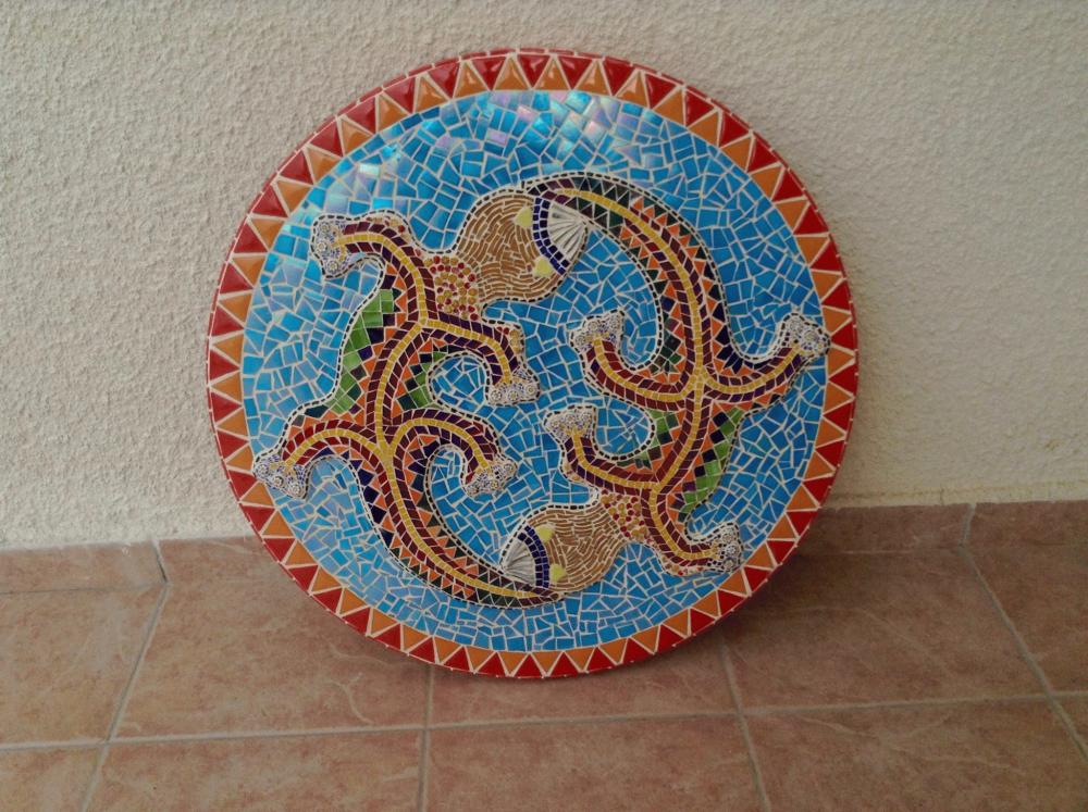 Posted at 19 Mar 2015 at 6:06AM by Cat*Scratch Re: March 2015, so a new project Not for sale, I'm afraid. It's just that people here just don't buy it, they prefer the massed produced stuff that's cheaper. They pay for the tiles, sometimes grout and glue as well, but when it comes to time, and my two lizards are about 60 hour's work, they just don't want to know! So I just have them in my house and garden, and occasionally have a few, mostly coasters, free for some very close friends.