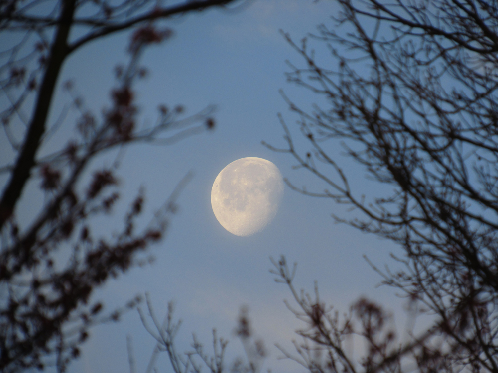 With the trees budding, very soon the view of the daytime moon will be obscured. Taken March 2016. - This picture is included in the Seasons photo album belonging to (steelbound). It has been uploaded on 29 Nov 2016 at 7:38AM. Votes: 5 You can return to (steelbound)'s album or open your photo album. Comments Re: Limited Time Only Fabulous capture! Love the framing.