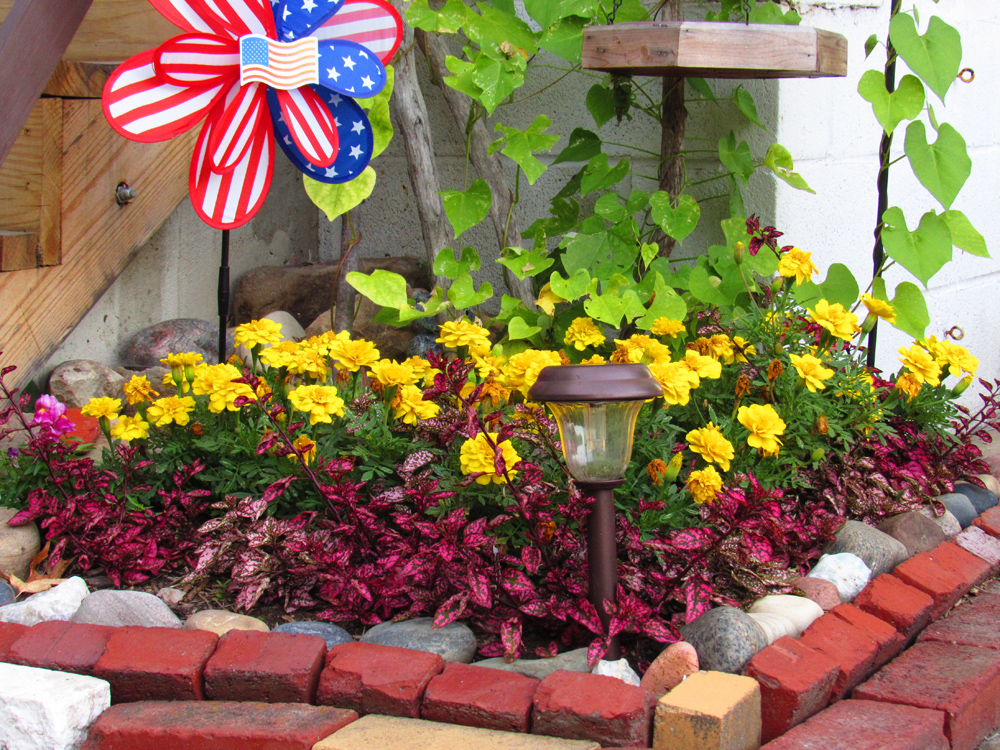 I just happened to snap this picture at what turned out to be the peak for this bed. We went through a long dry spell soon after and the pink foliage plants dried to crispy leaves and the marigolds caught powdery mildew because Lake Erie ensures that, even 50 miles away from it, it will be humid. Bonus points for anyone who can find the volunteer snap dragon plant. Taken July 2016. - This picture is included in the Seasons photo album belonging to (steelbound). It has been uploaded on 29 Nov 2016 at 9:06AM. Votes: 2 You can return to (steelbound)'s album or open your photo album. Comments Re: Summer Peak LOVE this! Drought has been pretty bad this year, nationwide it seems. Posted at 29 Nov 2016 at 1:53PM by Scheherizade Re: Summer Peak Gorgeous! Is the Snapdragon on the top right of this picture?
