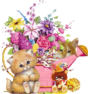 KIttens with Flower Can Arrangement