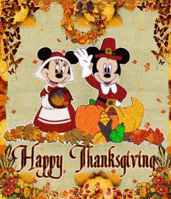 Happy Thanksgiving Logo - Fall Leaves / Minnie and Mickey