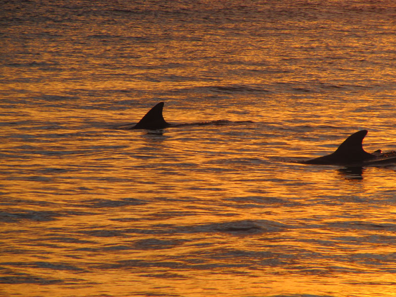 Walking along Morton Island beach at sunset some wild dolphins came along to say Hi.